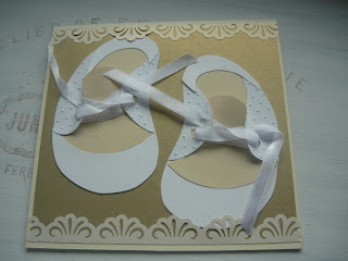 Dla dzidziusia, który niedługo będzie miał chrzest zrobiłam karteczkę z ozdobnym opakowaniem. Kartka jest uniwersalna, może być zarówno dla chłopczyka jak i dziewczynki. Pomysł na buciki można znaleźć TUTAJ